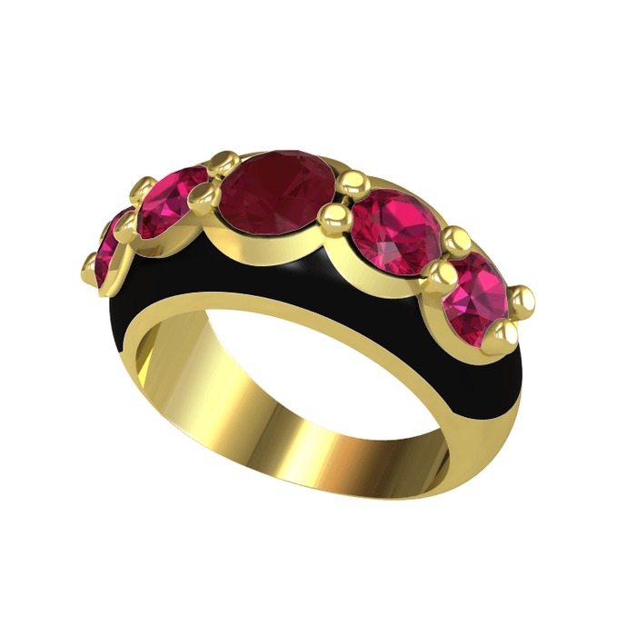 Kök yakut ve rodolit garnet 925 ayar altın kaplama gümüş yüzük (Siyah mineli)