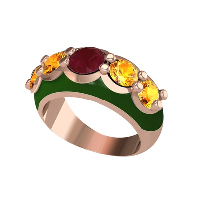 Kök yakut ve sitrin 8 ayar rose altın yüzük (Yeşil mineli)