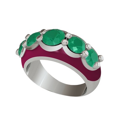 Kök zümrüt 14 ayar beyaz altın yüzük (Bordo kırmızı mineli)