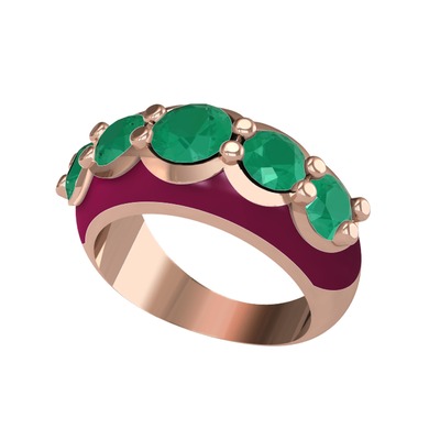 Kök zümrüt 14 ayar rose altın yüzük (Bordo kırmızı mineli)