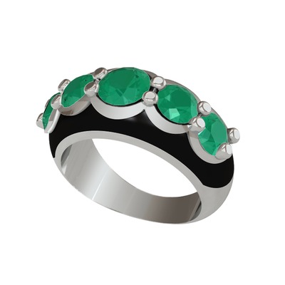 Kök zümrüt 18 ayar beyaz altın yüzük (Siyah mineli)