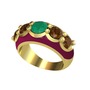 Kök zümrüt ve dumanlı kuvars 8 ayar altın yüzük (Bordo kırmızı mineli)