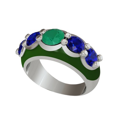 Kök zümrüt ve lab safir 18 ayar beyaz altın yüzük (Yeşil mineli)
