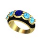 Lab safir ve akuamarin 925 ayar altın kaplama gümüş yüzük (Siyah mineli)