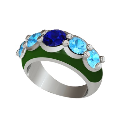 Lab safir ve akuamarin 925 ayar gümüş yüzük (Yeşil mineli)