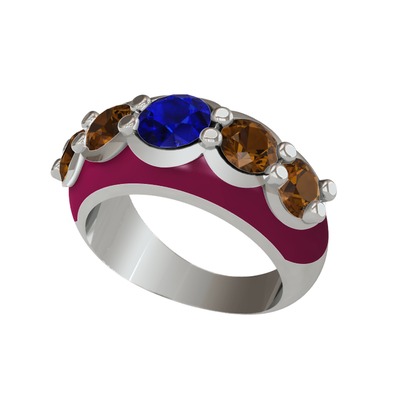 Lab safir ve dumanlı kuvars 14 ayar beyaz altın yüzük (Bordo kırmızı mineli)