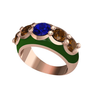 Lab safir ve dumanlı kuvars 8 ayar rose altın yüzük (Yeşil mineli)