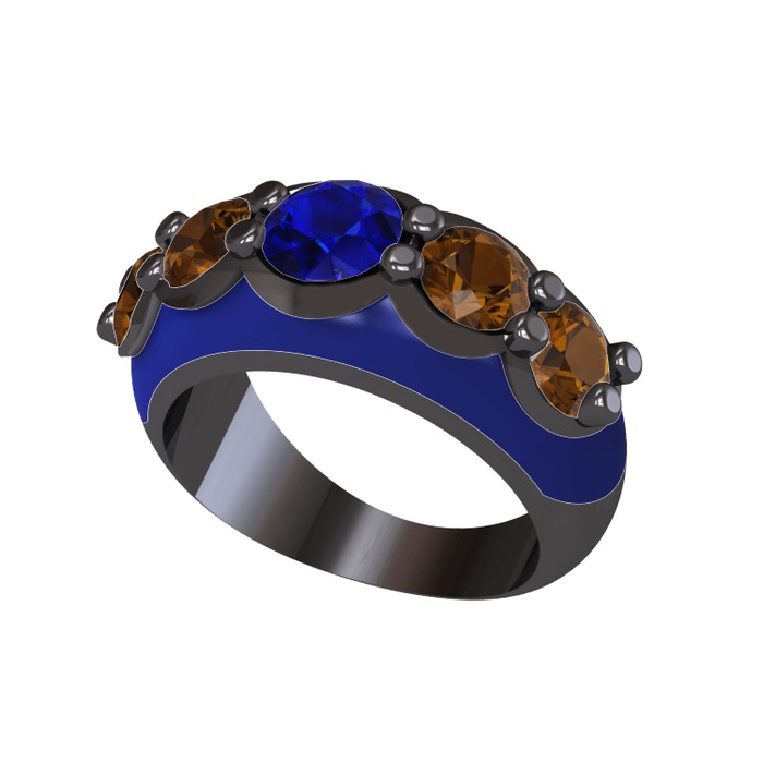 Lab safir ve dumanlı kuvars 925 ayar siyah rodyum kaplama gümüş yüzük (Lacivert mineli)