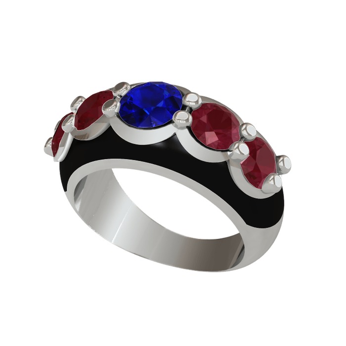 Lab safir ve kök yakut 8 ayar beyaz altın yüzük (Siyah mineli)
