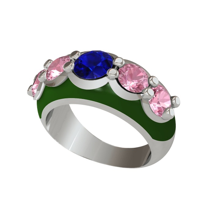 Lab safir ve pembe kuvars 18 ayar beyaz altın yüzük (Yeşil mineli)
