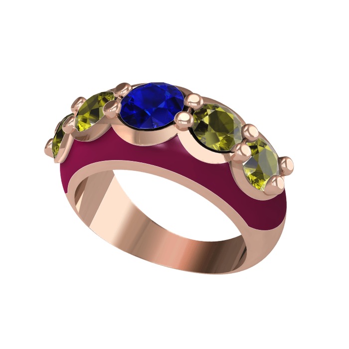 Lab safir ve peridot 14 ayar rose altın yüzük (Bordo kırmızı mineli)