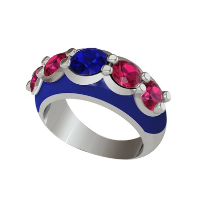Lab safir ve rodolit garnet 18 ayar beyaz altın yüzük (Lacivert mineli)