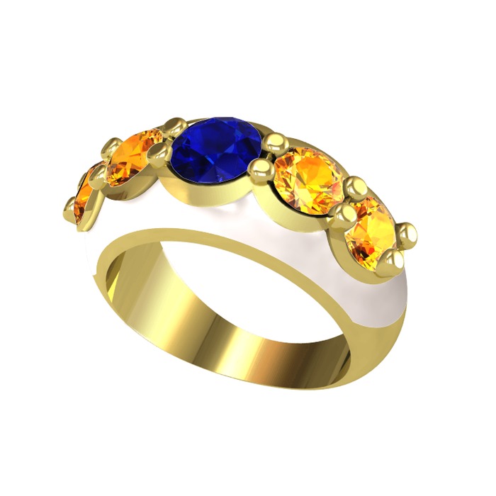Lab safir ve sitrin 18 ayar altın yüzük (Beyaz mineli)
