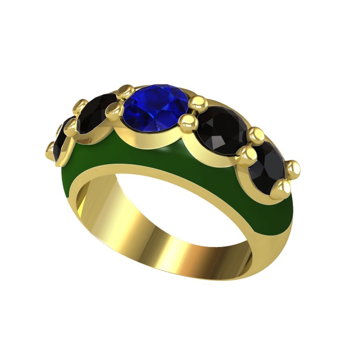 Lab safir ve siyah zirkon 8 ayar altın yüzük (Yeşil mineli)