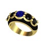Lab safir ve siyah zirkon 925 ayar altın kaplama gümüş yüzük (Siyah mineli)