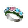 Pembe kuvars ve akuamarin 8 ayar beyaz altın yüzük (Yeşil mineli)