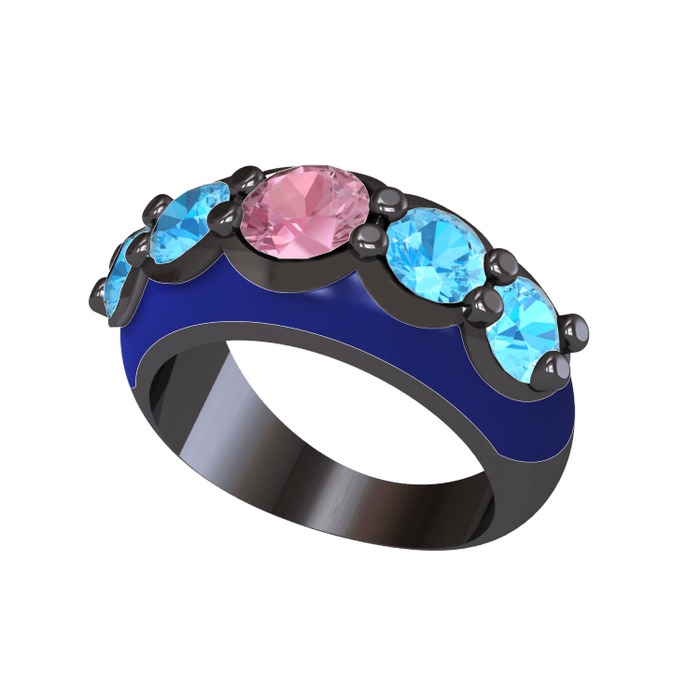 Pembe kuvars ve akuamarin 925 ayar siyah rodyum kaplama gümüş yüzük (Lacivert mineli)