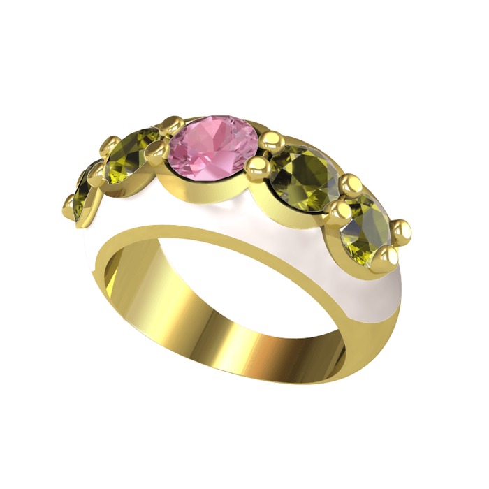 Pembe kuvars ve peridot 14 ayar altın yüzük (Beyaz mineli)