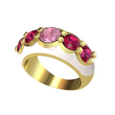 Pembe kuvars ve rodolit garnet 8 ayar altın yüzük (Beyaz mineli)