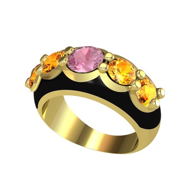 Pembe kuvars ve sitrin 8 ayar altın yüzük (Siyah mineli)