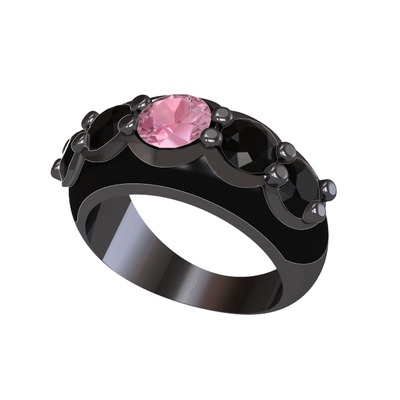 Pembe kuvars ve siyah zirkon 925 ayar siyah rodyum kaplama gümüş yüzük (Siyah mineli)