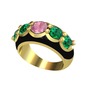 Pembe kuvars ve yeşil kuvars 14 ayar altın yüzük (Siyah mineli)
