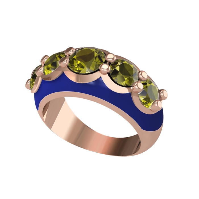 Peridot 14 ayar rose altın yüzük (Lacivert mineli)