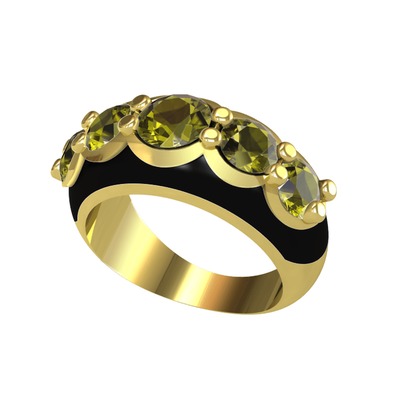 Peridot 18 ayar altın yüzük (Siyah mineli)