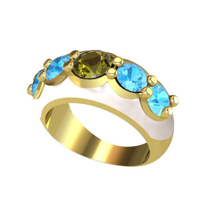 Peridot ve akuamarin 18 ayar altın yüzük (Beyaz mineli)