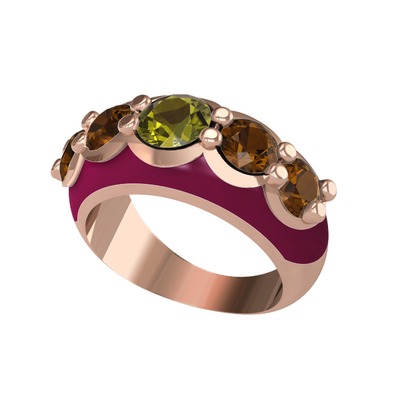 Peridot ve dumanlı kuvars 18 ayar rose altın yüzük (Bordo kırmızı mineli)