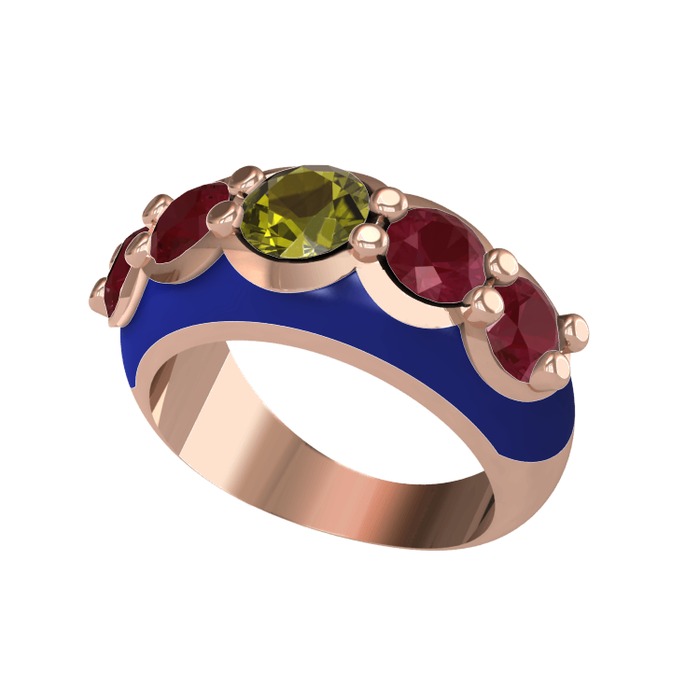 Peridot ve kök yakut 14 ayar rose altın yüzük (Lacivert mineli)