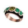 Peridot ve kök zümrüt 8 ayar rose altın yüzük (Siyah mineli)
