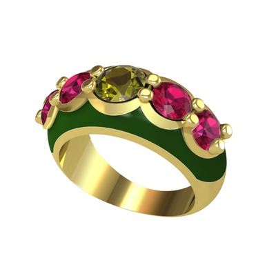Peridot ve rodolit garnet 18 ayar altın yüzük (Yeşil mineli)