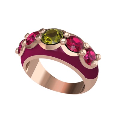 Peridot ve rodolit garnet 18 ayar rose altın yüzük (Bordo kırmızı mineli)