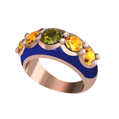 Peridot ve sitrin 925 ayar rose altın kaplama gümüş yüzük (Lacivert mineli)