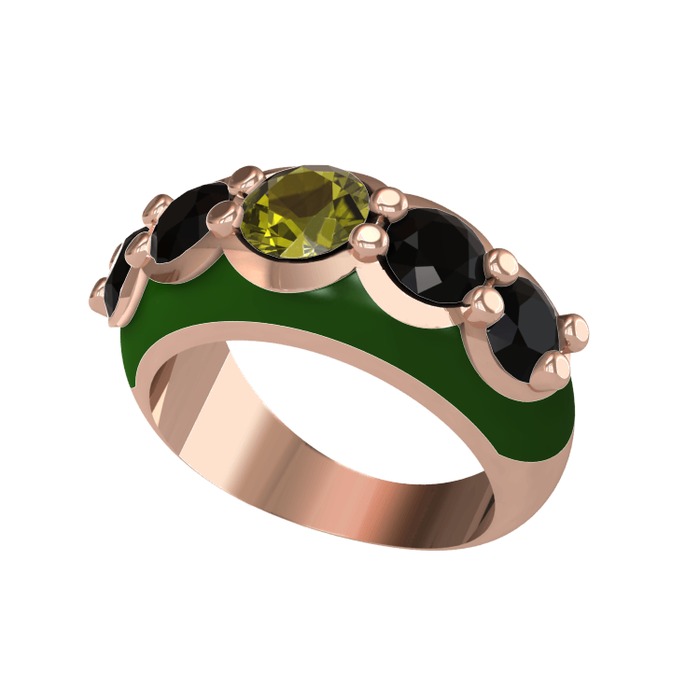 Peridot ve siyah zirkon 925 ayar rose altın kaplama gümüş yüzük (Yeşil mineli)