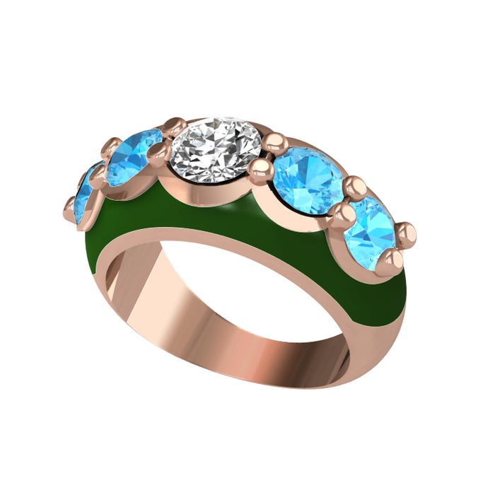 Pırlanta ve akuamarin 18 ayar rose altın yüzük (0.92 karat, yeşil mineli)