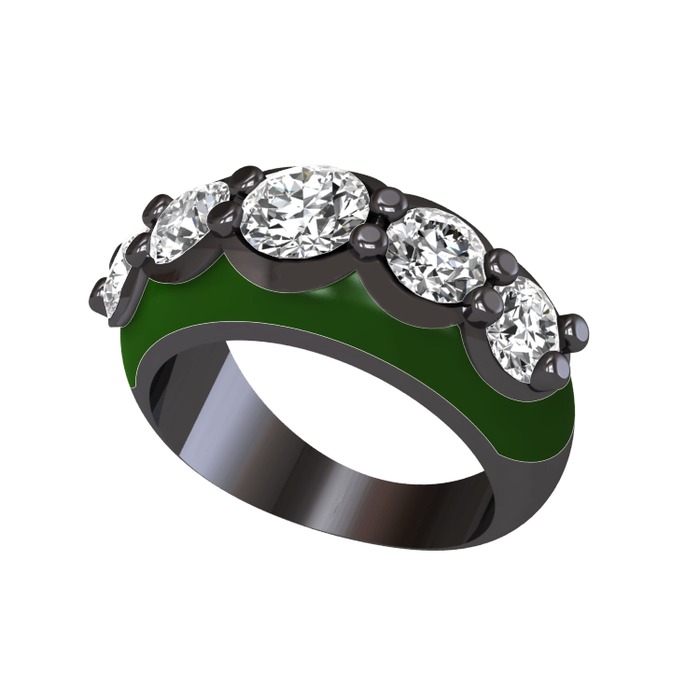 Pırlanta ve beyaz zirkon 925 ayar siyah rodyum kaplama gümüş yüzük (0.92 karat, yeşil mineli)