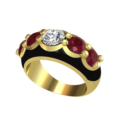 Pırlanta ve kök yakut 18 ayar altın yüzük (0.92 karat, siyah mineli)