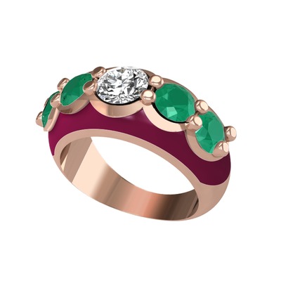 Pırlanta ve kök zümrüt 8 ayar rose altın yüzük (0.92 karat, bordo kırmızı mineli)