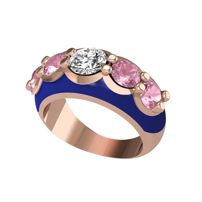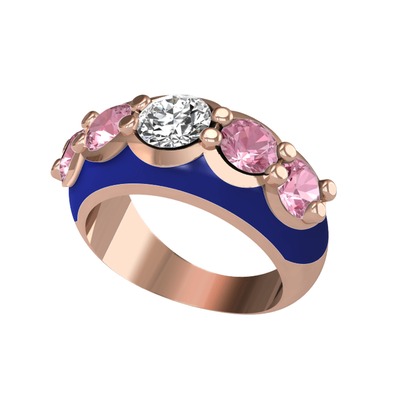 Pırlanta ve pembe kuvars 18 ayar rose altın yüzük (0.92 karat, lacivert mineli)