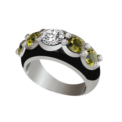 Pırlanta ve peridot 8 ayar beyaz altın yüzük (0.92 karat, siyah mineli)