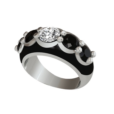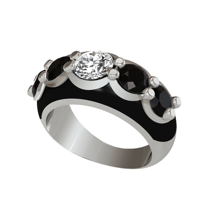 Pırlanta ve siyah zirkon 14 ayar beyaz altın yüzük (0.92 karat, siyah mineli)