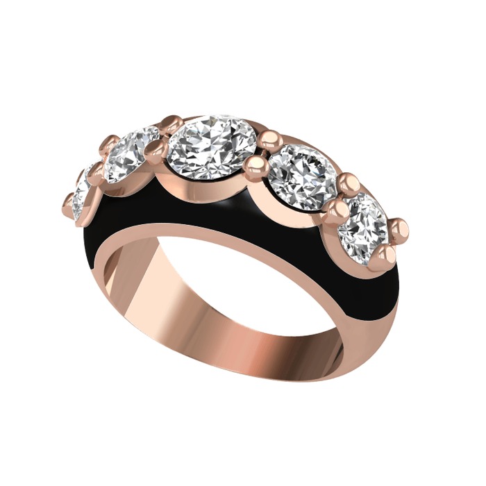 Pırlanta ve swarovski 925 ayar rose altın kaplama gümüş yüzük (0.92 karat, siyah mineli)