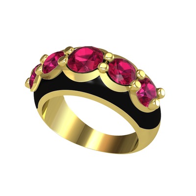 Rodolit garnet 18 ayar altın yüzük (Siyah mineli)