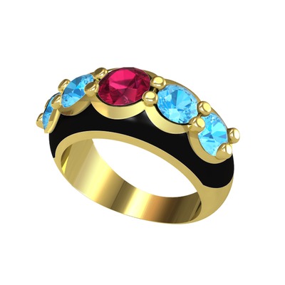 Rodolit garnet ve akuamarin 18 ayar altın yüzük (Siyah mineli)