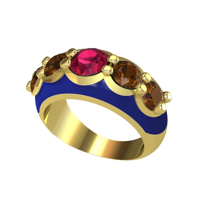 Rodolit garnet ve dumanlı kuvars 14 ayar altın yüzük (Lacivert mineli)