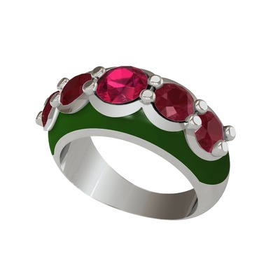 Rodolit garnet ve kök yakut 14 ayar beyaz altın yüzük (Yeşil mineli)