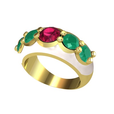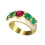 Rodolit garnet ve kök zümrüt 14 ayar altın yüzük (Beyaz mineli)