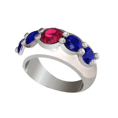 Rodolit garnet ve lab safir 925 ayar gümüş yüzük (Beyaz mineli)
